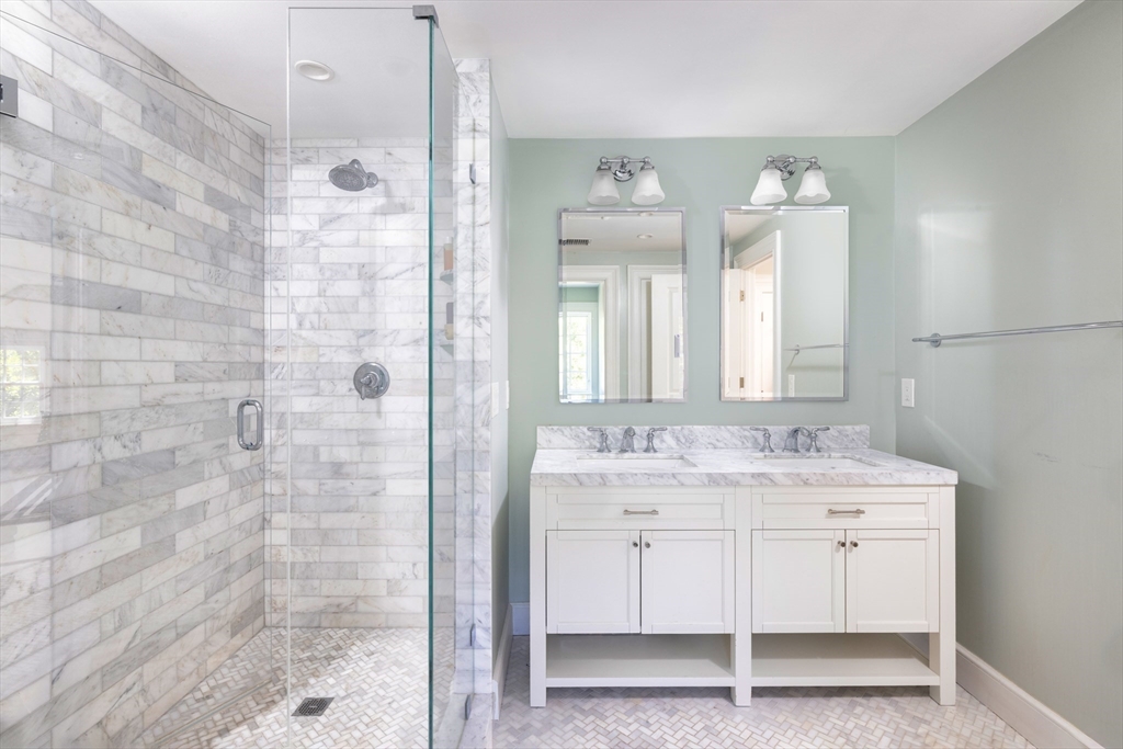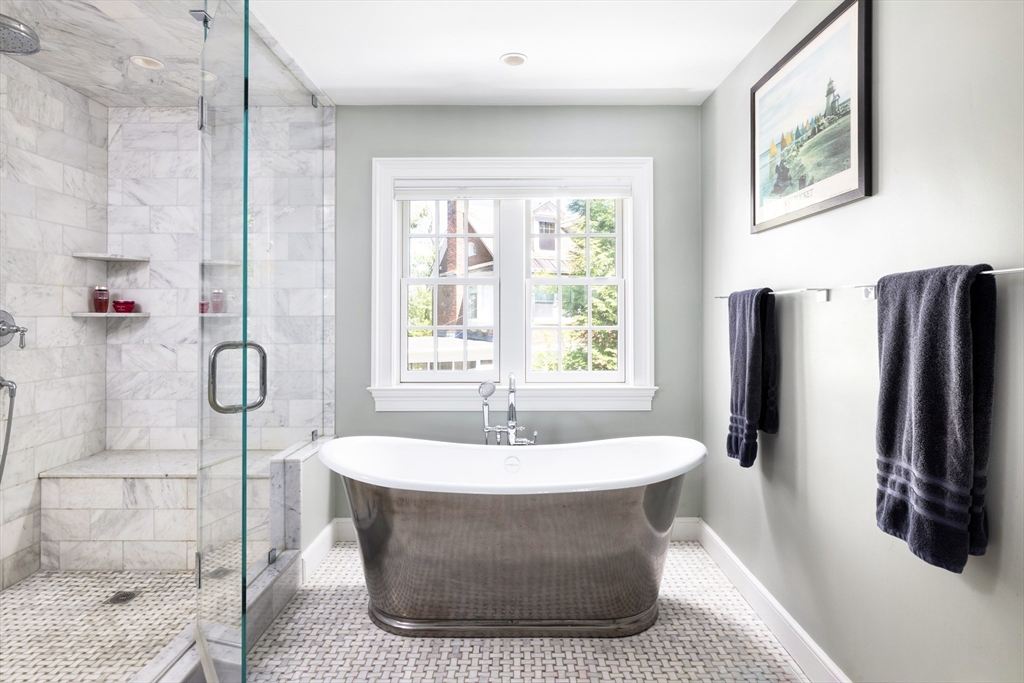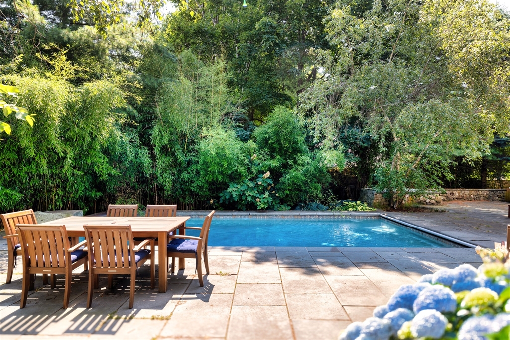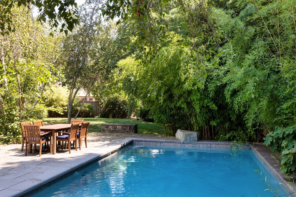 Set on a quiet cul-de-sac, this 1916 Colonial retains the details that define its charm, with a 2016 renovation that adds ease and comfort to everyday living. Sun-filled rooms, custom finishes, and thoughtful layout create a natural flow for daily living and entertaining. Landscaped .39AC grounds, pool, & patio extend the living space outdoors. 2-story foyer connects living room w/ fireplace, library, & dining. Bright, contemporary kitchen features an oversized island, loads of cabinetry, butler's pantry, & eat-in area that opens to a family room w/ built-ins. South-facing doors open to patio, pool, & level yard. Mudroom w/ cubbies, full bath, & attached 2-car garage. Primary Suite w/ sitting area, spa-like bath, & generous walk-in closet. Add'l en-suite bedroom, 2 beds w/ shared bath, & laundry complete floor. 2 beds share Jack-and-Jill bath on 3rd floor. Lower level has own entrance, movie theater, gym, rec room, 1/2 bath, & 2nd laundry. Minutes from Chestnut Hill and Newton Centre,