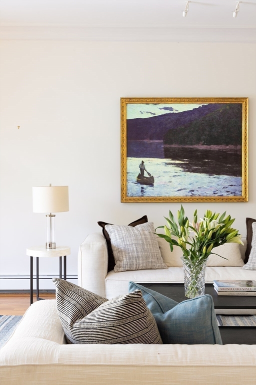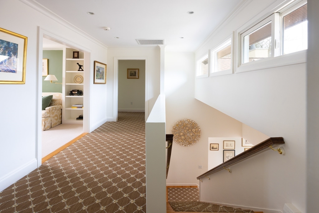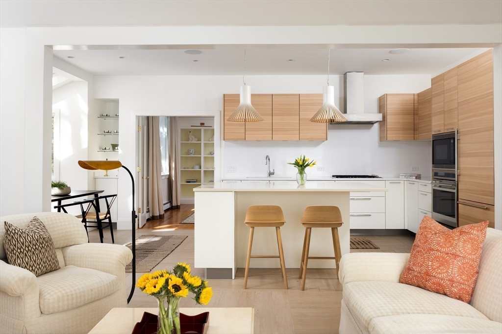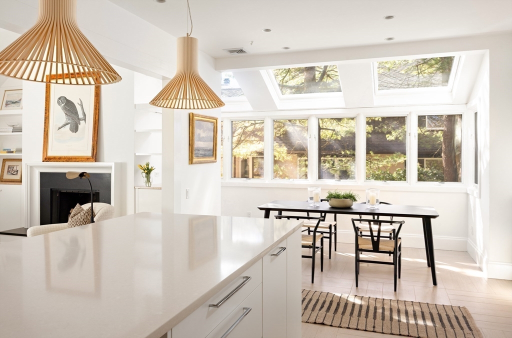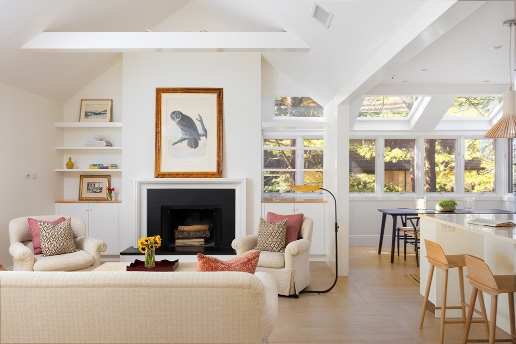 Beautifully renovated 3BD plus office, 3.5BA townhouse offers over 3,600 sqft of thoughtfully designed space. Expansive windows on 3 sides fill the home with natural light, enhancing its soaring ceilings, bespoke cabinetry, and elegant finishes. Bright entry leads to a spacious LR with 9.5-ft ceilings and sliding doors to deck and garden. Elegant DR features custom built-ins and sliding doors. Poggenpohl kitchen is equipped with premium appliances and eat-in island. Sun-lit breakfast area, lined with windows features built-in bar and wine fridge. FR with a cathedral ceiling, fireplace, and custom built-ins. Main-level primary suite features built-ins, two walk-in closets, and a spa-like bath. Upstairs are 2 large bedrooms, an office, and 2 baths. Lower level offers rec space, laundry, and storage. Attached 2 car garage. Private garden and expansive deck. Central to top private and public schools. Larz Anderson and nearby golf. Quick access to Longwood, Boston, Cambridge, and Logan.